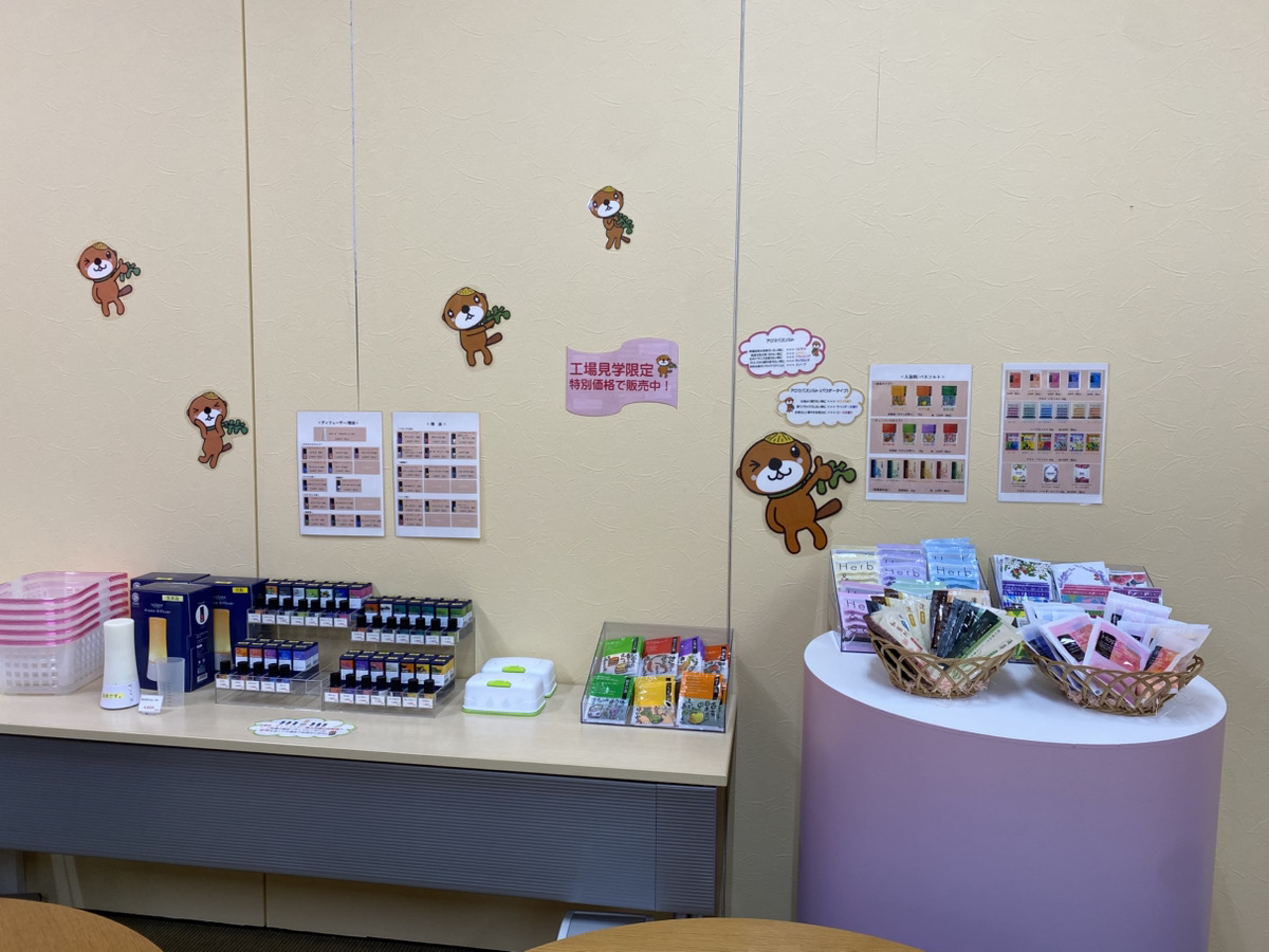①会社説明、②工場見学、③ 香りづけ体験、④質疑応答、⑤商品購買