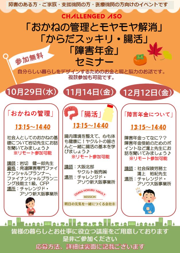 大阪エリア(大阪・新大阪・天王寺)にて10/29(金)、11/14(金)、12/12(金)にセミナーを開催します