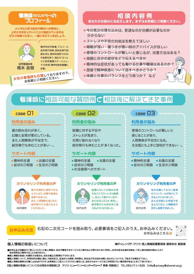そんなときこそ、こころのケア専門の看護師にお話ししてみませんか❓
