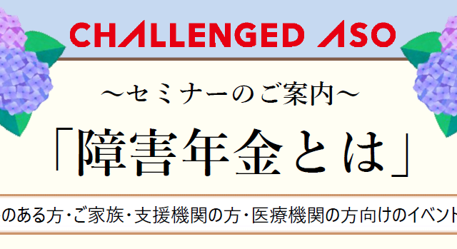 天王寺イベント情報 【大阪エリアイベント】6/19(金)障害年金とは 2026年4月23日 k.nishida 就労移行支援事業所チャレンジド・アソウ チャレンジド・アソウ新大阪事業所にて、社会保険労務士 溝上 裕紀先生による 『障害年金とは』セミナーを開催いたします! 障害年金 …